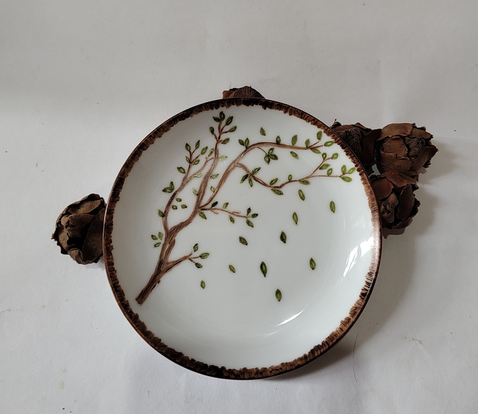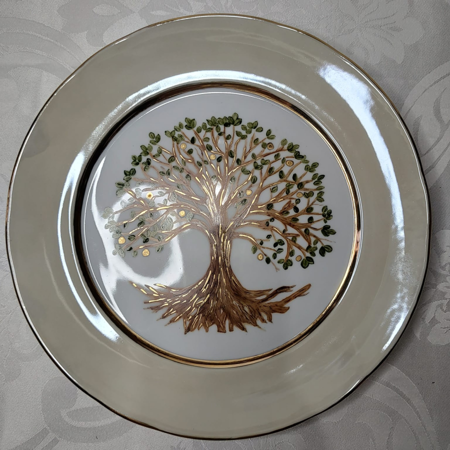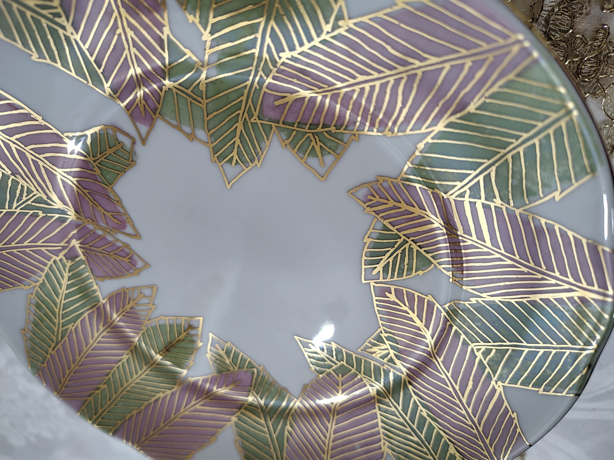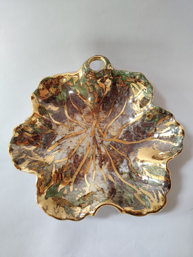 Prato Com Pé - Folhas de Ouro