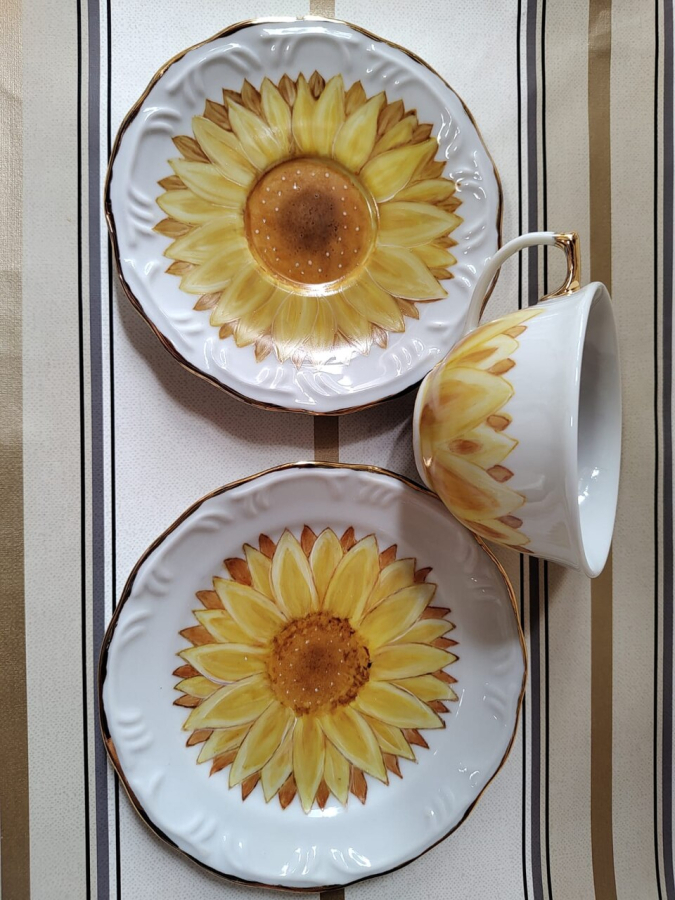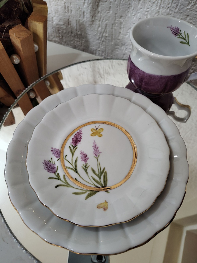 Trio de Chá com Ouro e Lavandas