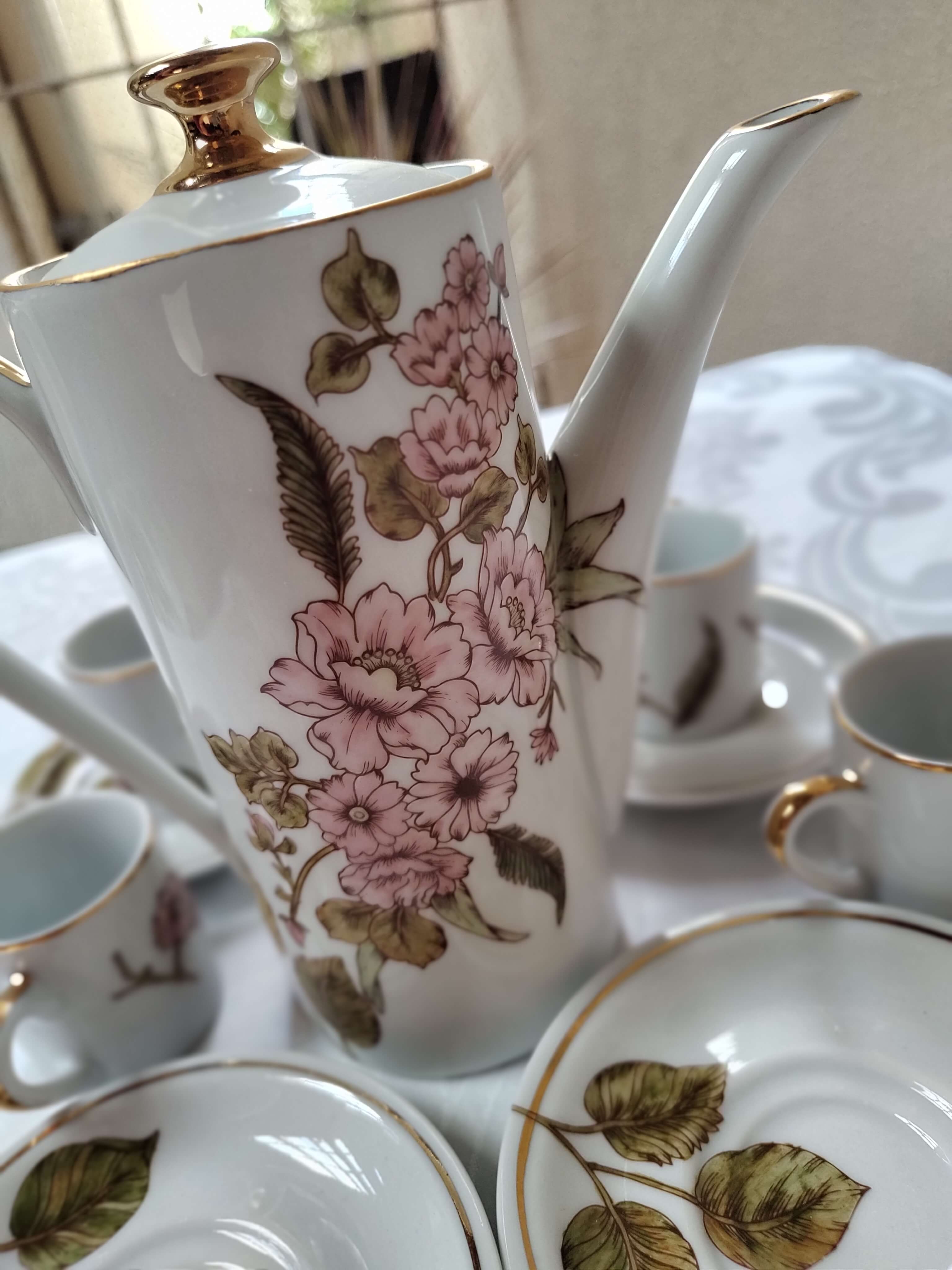 Bule e xícaras de café Flores de Primavera