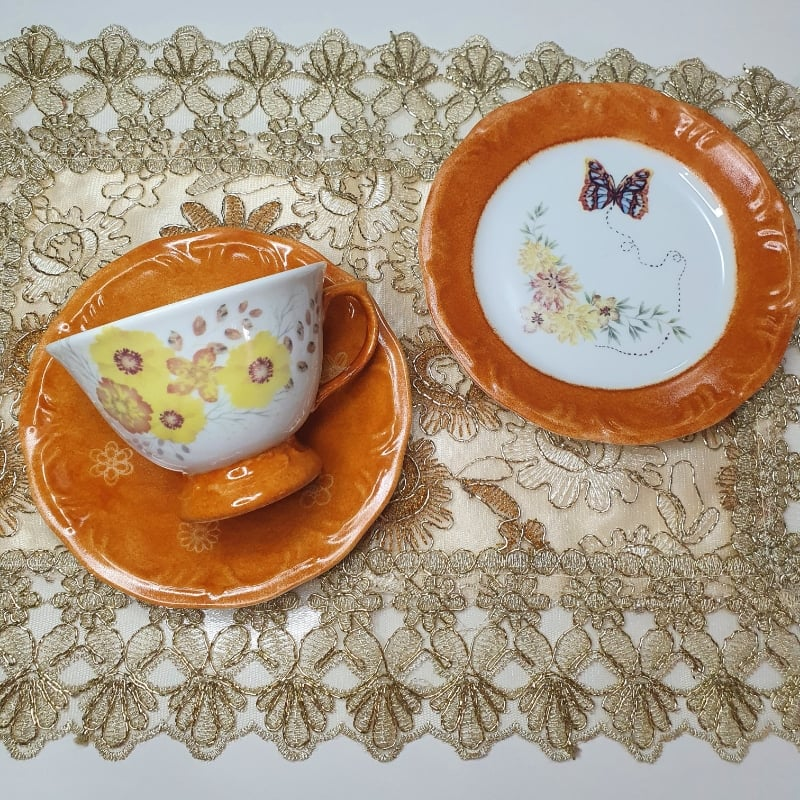 Xícara de Chá Caramelo com Pratinho de Pão
